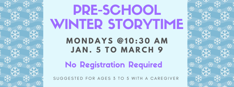 Join us for stories, songs, rhymes, and fun! Suggested for ages 3 to 5 with a caregiver. No registration required.