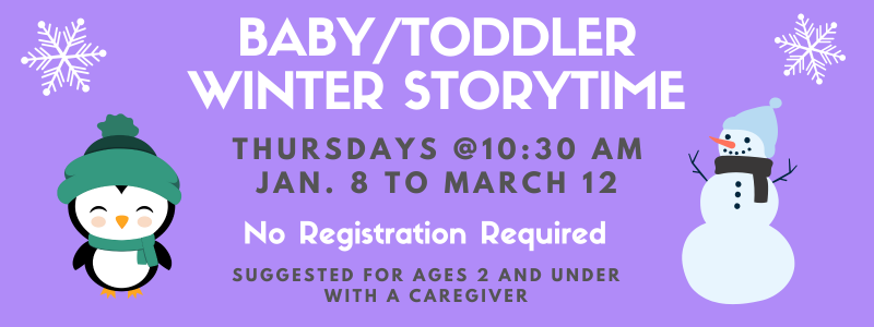 Join us for stories, songs, rhymes, and fun! Suggested for ages 2 and under with a caregiver. No registration required.