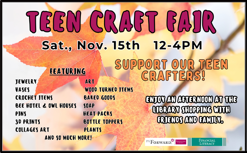 The event will be held on Saturday, Nov. 15 from 12 to 4 PM. Local teens will be showcasing their wares and gaining valuable business experience. Items available will include jewelry, art, 3D prints, crafts, baked goods, plants, and much more.