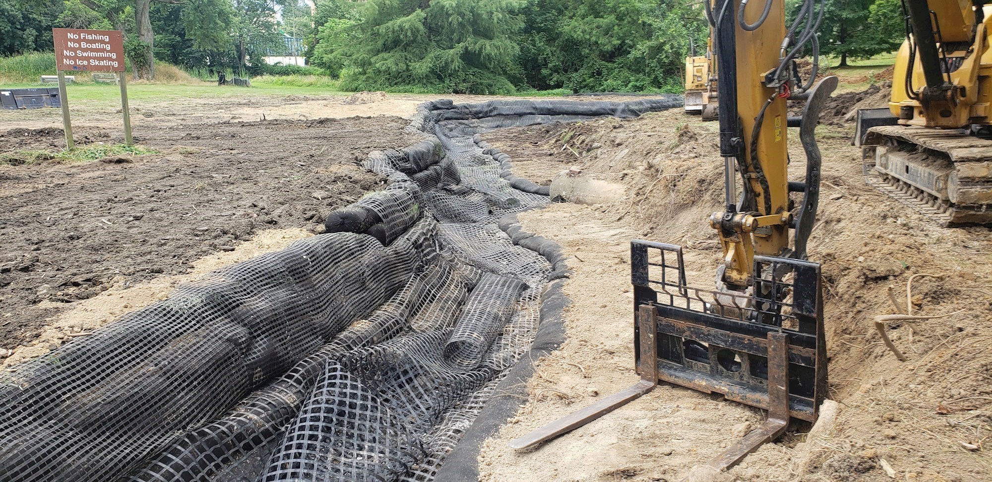 The Mermaid Park Restoration Project directly addressed the impacts of eutrophication by dredging to remove sediment (including algae and nutrients) from the pond, stabilizing the local streambank to prevent future erosion that was contributing to the deposit of excess nutrients, and planting a meadow of native plants and tall grasses that will help filter stormwater runoff and capture additional sediment before stormwater reaches the stream/pond.