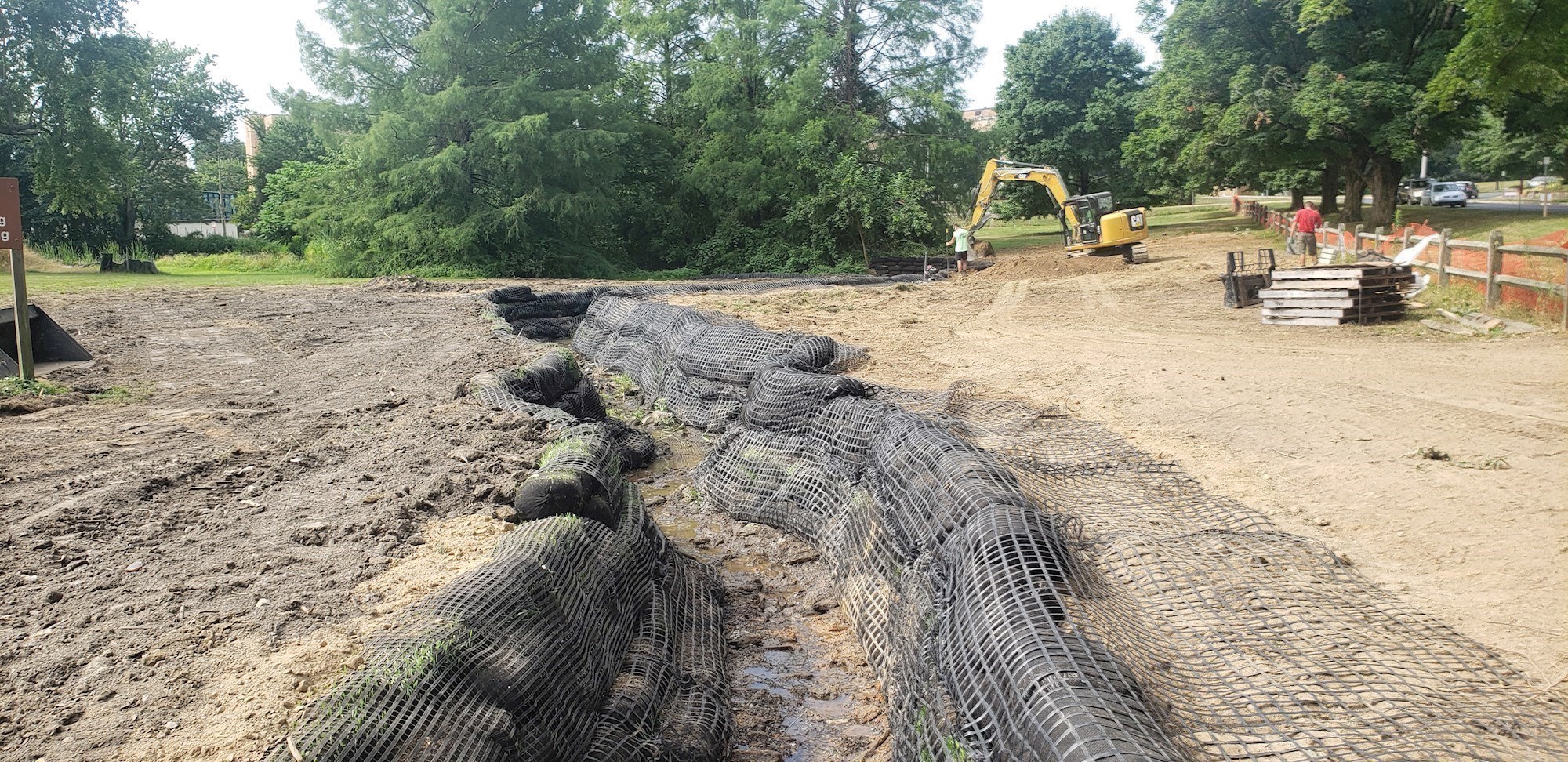 - Stabilizing 190 linear feet of streambank leading into the pond to reduce future erosion and prevent 8,527.20 lbs./yr. of sediment from being deposited into the pond from stormwater runoff; the Township used an innovative green technique using vegetative logs where the roots of the vegetation will grow into and stabilize the streambank (more details below)