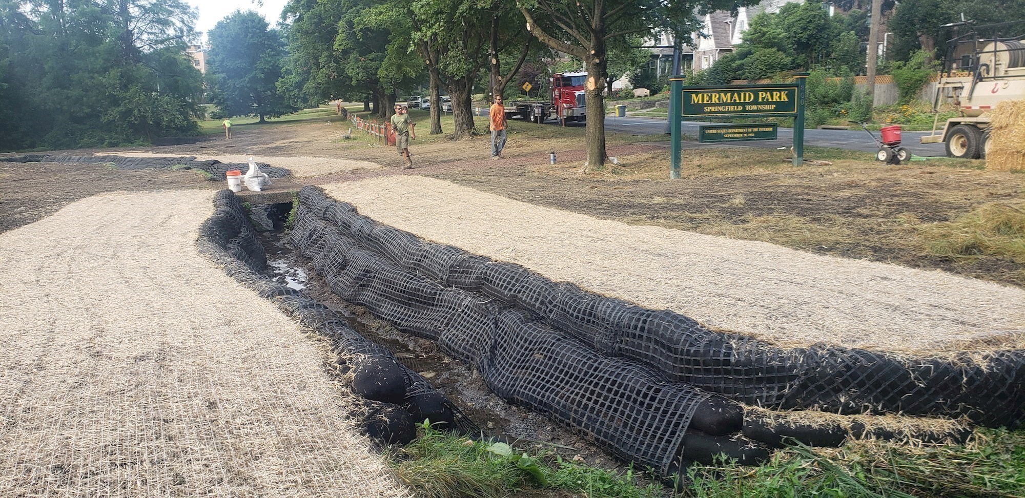 The Township spent 2020 and 2021 planning and securing the necessary funding needed to restore the streambank and habitat of Mermaid Park. The Township was successful in securing over $223,000 in funding from the Montgomery County Planning Commission's Montco 2040 Implementation Grant Program, the Giant Company and Keep Pennsylvania Beautiful Healing the Planet Grant, PECO and Natural Land's Green Region Open Space Program, and the TreeVitalize program. Contracts for the project were awarded by the Township in early 2022 and and completed in October 2022.