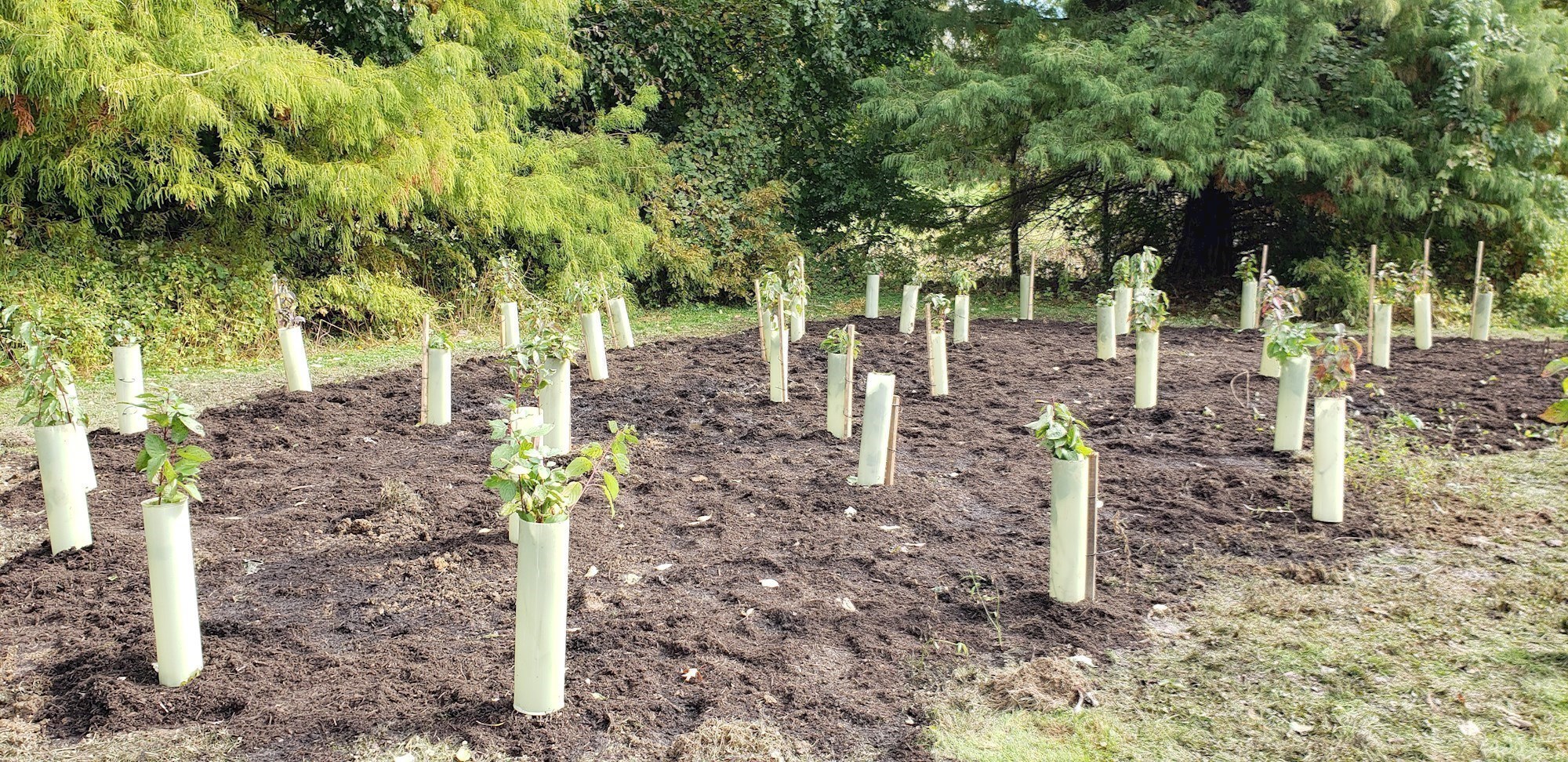 - Planting a meadow verge of seventy-two (72) native trees, shrubs, and tall grasses to filter surface stormwater runoff and capture sediment before it enters the stream/pond